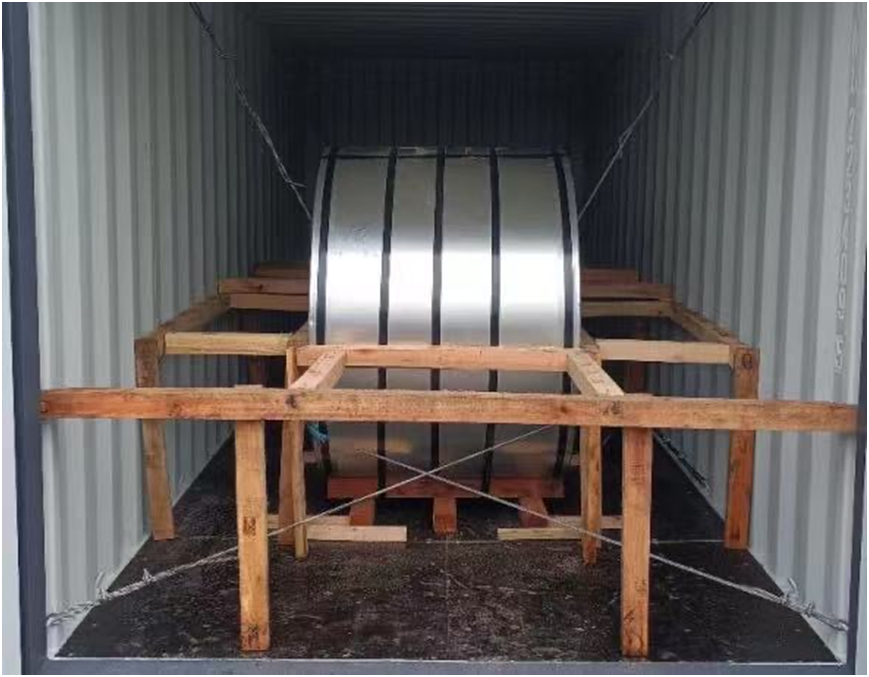 卷与卷之间,卷钢与箱壁、箱门之间的空隙用坚固的木架支撑,木架不能是T 型或 H 型面,推荐长方体或立方体型架。